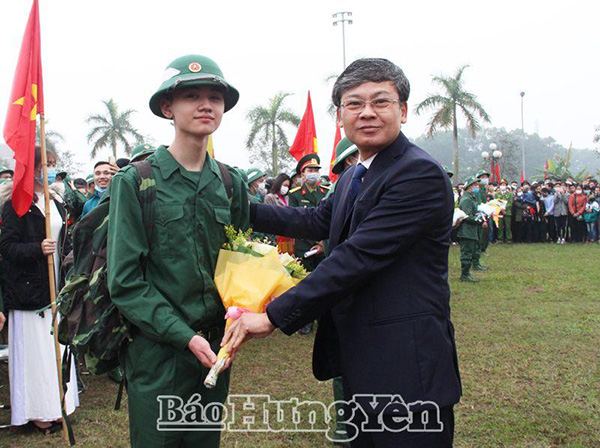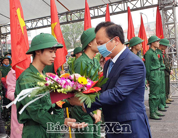Phó Chủ tịch UBND tỉnh Bùi Thế Cử tặng hoa tân binh huyện Yên Mỹ