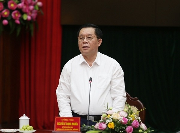 Đồng chí Nguyễn Trọng Nghĩa, Bí thư Trung ương Đảng, Trưởng Ban Tuyên giáo Trung ương phát biểu tại buổi làm việc (Ảnh:KS)