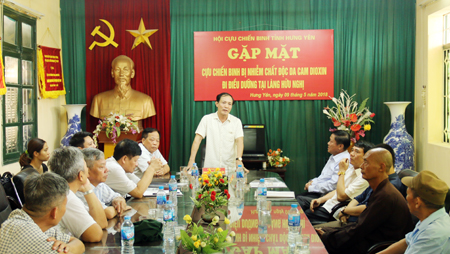 Ngày 9.5, Hội Cựu chiến binh (CCB) tỉnh tổ chức gặp mặt 20 hội viên bị nhiễm chất độc da cam/dioxin trong tỉnh, được lựa chọn đi điều dưỡng tại Làng Hữu nghị Việt Nam (Hoài Đức - Hà Nội). Tới dự có đồng chí Đoàn Văn Hòa, Ủy viên Ban Thường vụ Tỉnh ủy, Trưởng ban Dân vận Tỉnh ủy.