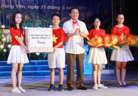 Thay mặt Tỉnh ủy, HĐND, UBND, Ủy ban MTTQ Việt Nam tỉnh, Trưởng ban Dân vận Tỉnh ủy Đoàn Văn Hòa tặng quà cho các cháu thiếu nhi; các sở, ngành và nhà tài trợ đã tặng 20 suất quà cho học sinh nghèo có thành tích cao trong học tập trên địa bàn thành phố Hưng Yên.