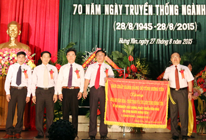 Ngày 27.8, Sở Văn hóa, Thể thao và Du lịch tỉnh Hưng Yên trọng thể tổ chức kỷ niệm 70 năm Ngày truyền thống ngành Văn hóa (28.8.1945 -28.8.2015). Dự lễ kỷ niệm có các đồng chí: Đỗ Tiến Sỹ, Phó Bí thư Thường trực Tỉnh ủy; Nguyễn Duy Hưng, Phó Chủ tịch UBND tỉnh.