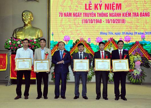 Thừa ủy quyền của Thủ tướng Chính phủ, Chủ tịch UBND tỉnh Nguyễn Văn Phóng trao Bằng khen của Thủ tướng Chính phủ tặng Ủy ban Kiểm tra Tỉnh ủy và ông Đỗ Phú Xuyên, Phó Chủ nhiệm Ủy ban Kiểm tra Tỉnh ủy đã có thành tích trong công tác từ năm 2013 đến năm 2017, góp phần vào sự nghiệp xây dựng chủ nghĩa xã hội và bảo vệ Tổ quốc. Ủy ban Kiểm tra Trung ương tặng Cờ thi đua cho Ủy ban Kiểm tra Tỉnh ủy có thành tích tiêu biểu xuất sắc trong phong trào thi đua chào mừng kỷ niệm 70 năm Ngày truyền thống ngành Kiểm tra Đảng và tặng Bằng khen cho ông Trần Quốc Toản, Ủy viên Ban Thường vụ Tỉnh ủy, Chủ nhiệm Ủy ban Kiểm tra Tỉnh ủy có thành tích xuất sắc trong phong trào thi đua chào mừng kỷ niệm 70 năm Ngày truyền thống ngành Kiểm tra Đảng.