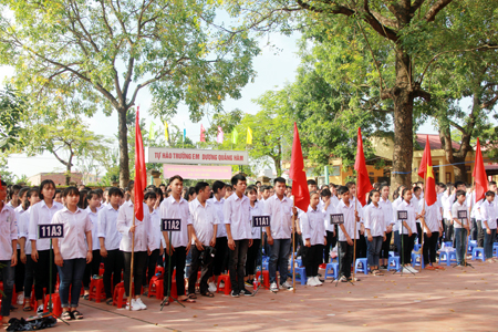 * Cùng ngày, đồng chí Trần Quốc Văn, Ủy viên Ban Thường vụ Tỉnh ủy, Bí thư Huyện ủy Văn Lâm dự lễ khai giảng năm học mới với thầy và trò Trường THPT Hùng Vương (Văn Lâm).
