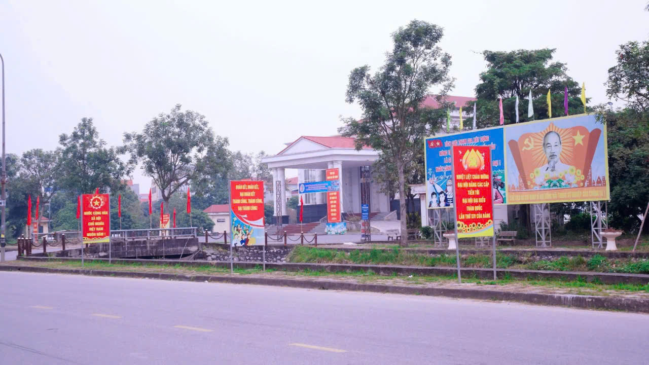Xã Triệu Việt Vương treo băng rôn, khẩu hiệu chào mừng Đại hội đại biểu toàn quốc lần thứ XIV của Đảng