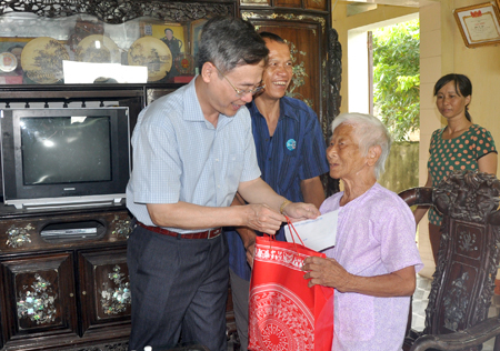 Đồng chí Tạ Hồng Quảng tặng quà gia đình Bà mẹ Việt Nam anh hùng Phạm Thị Nghĩa