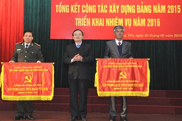 Tại hội nghị, Ban Thường vụ Tỉnh uỷ biểu dương, trao tặng Cờ cho 2 Đảng bộ trực thuộc Tỉnh uỷ và 16 tổ chức cơ sở đảng đạt TSVM tiêu biểu 5 năm liền (2010 - 2015); tặng Bằng khen cho 14 tổ chức cơ sở đảng đạt TSVM tiêu biểu 5 năm liền (2010 - 2015); tặng Bằng khen cho 50 đảng viên hoàn thành xuất sắc nhiệm vụ 5 năm liền (2010 - 2015).