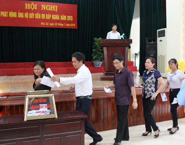 Ngay tại hội nghị, Quỹ "Đền ơn đáp nghĩa" huyện đã tiếp nhận được gần một trăm triệu đồng từ sự ủng hộ của các cơ quan, đơn vị, việc tiếp nhận sự ủng hộ quỹ sẽ được thực hiện vào tất cả các tháng trong năm, trong đó tập trung cao điểm từ 1-7 đến ngày 30-8-2015. Đây không chỉ là trách nhiệm mà còn là đạo lý “uống nước nhớ nguồn” của dân tộc, là hành động thiết thực kỷ niệm 68 năm Ngày thương binh - liệt sĩ 27-7./.