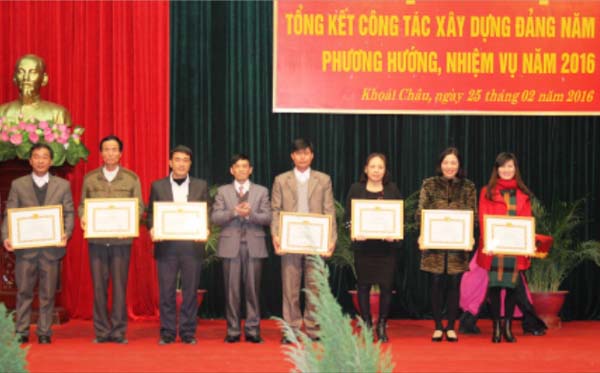 Lãnh đạo Huyện ủy Khoái Châu trao giấy khen cho các cá nhân có thành tích xuất sắc trong công tác xây dựng Đảng năm 2015