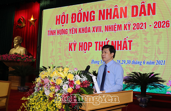 Phát biểu khai mạc kỳ họp, đồng chí Trần Quốc Toản, Phó Bí thư Tỉnh ủy, Chủ tịch HĐND tỉnh khóa XVI nhấn mạnh: Tại kỳ họp này, HĐND tỉnh nghe Ủy ban bầu cử tỉnh báo cáo kết quả bầu cử đại biểu HĐND các cấp và kết quả xác nhận tư cách đại biểu HĐND tỉnh khóa XVII, nhiệm kỳ 2021-2026; Ủy ban MTTQ Việt Nam tỉnh báo cáo tổng hợp ý kiến, kiến nghị của cử tri trong các cuộc tiếp xúc cử tri trước cuộc bầu cử; nghe UBND tỉnh báo cáo tình hình thực hiện nhiệm vụ phát triển kinh tế - xã hội 6 tháng đầu năm và nhiệm vụ, giải pháp 6 tháng cuối năm 2021. Bên cạnh đó, HĐND tỉnh sẽ xem xét, quyết định cơ cấu tổ chức và bầu các chức danh lãnh đạo chủ chốt của chính quyền tỉnh khóa XVII, gồm: Chủ tịch, các Phó Chủ tịch HĐND tỉnh; thông qua số lượng, cơ cấu thành viên các ban của HĐND tỉnh; bầu các Trưởng ban, Phó trưởng Ban HĐND tỉnh; bầu Chủ tịch, các Phó Chủ tịch và Ủy viên UBND tỉnh; bầu Hội thẩm Toà án nhân dân tỉnh; xem xét, quyết định kế hoạch tổ chức các kỳ họp thường lệ của HĐND tỉnh trong năm 2021 và một số nội dung quan trọng khác. Đồng chí Chủ tịch HĐND tỉnh khóa XVI Trần Quốc Toản đề nghị: Các đại biểu HĐND tỉnh nêu cao tinh thần trách nhiệm trước nhân dân, trước Đảng, dân chủ thảo luận, sáng suốt chọn lựa bầu người có đủ đức, đủ tài, đủ sức đảm đương các trọng trách trong bộ máy của HĐND tỉnh và UBND tỉnh trong thời gian tới. Đồng thời, phát huy tinh thần trách nhiệm, tập trung trí tuệ, dành thời gian nghiên cứu, thảo luận kỹ lưỡng, tích cực đóng góp ý kiến để quyết định các nội dung được HĐND tỉnh xem xét, dự kiến thông qua tại kỳ họp này.