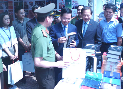 Trưởng Ban Tuyên giáo Trung ương Võ Văn Thưởng và các đại biểu tham quan các gian trưng bày sách