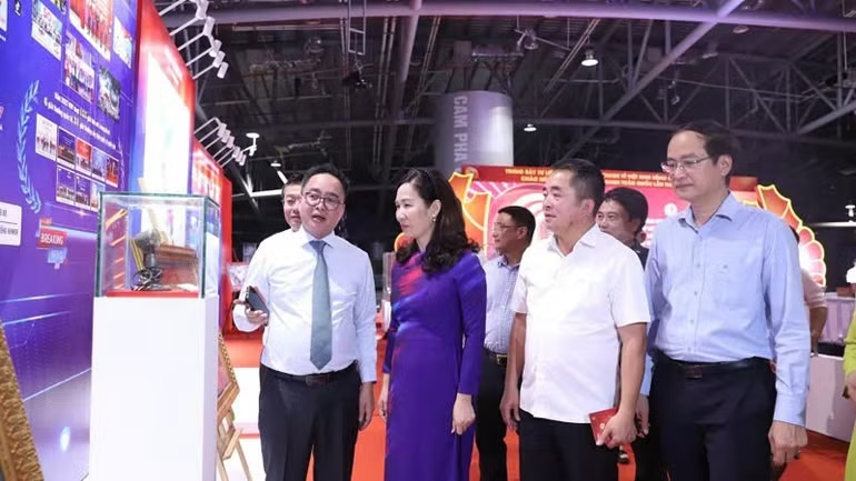 Các đại biểu tham quan không gian trưng bày trưng bày tư liệu, hiện vật mang chủ đề "Phát thanh vì Việt Nam hùng cường, thịnh vượng".