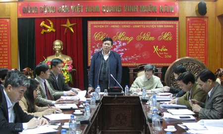 Ngày 25.3, đoàn kiểm tra do đồng chí Đỗ Xuân Tuyên, Ủy viên Ban Thường vụ Tỉnh ủy, Trưởng ban Tổ chức Tỉnh ủy làm trưởng đoàn đã kiểm tra công tác lãnh đạo, chỉ đạo việc tổ chức thực hiện Chỉ thị số 51-CT/TW ngày 4.1.2016 của Bộ Chính trị, Chỉ thị số 07-CT/TU ngày 27.1.2016 của Ban Thường vụ Tỉnh ủy về lãnh đạo cuộc bầu cử đại biểu Quốc hội khóa XIV và bầu cử đại biểu HĐND các cấp nhiệm kỳ 2016 - 2021 tại huyện Văn Giang.