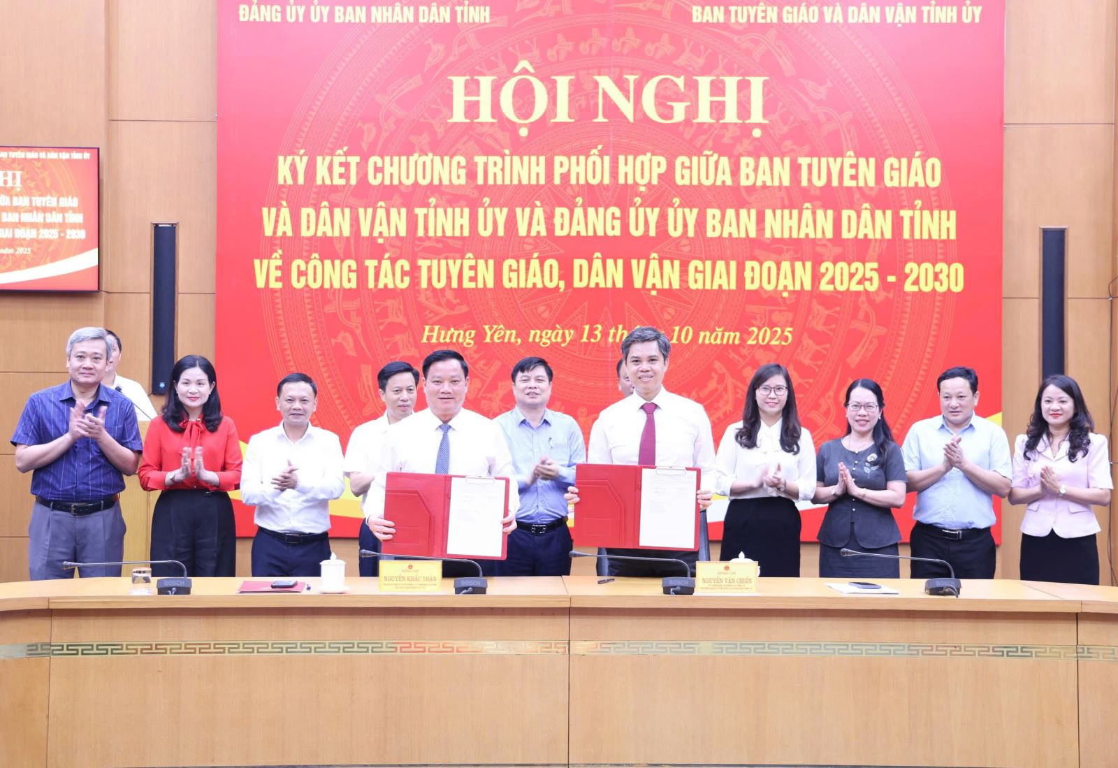 Chiều ngày 13/10, tại Trung tâm Thông tin - Hội nghị tỉnh diễn ra hội nghị ký kết chương trình phối hợp giữa Ban Tuyên giáo và Dân vận Tỉnh ủy với Đảng ủy UBND tỉnh về công tác tuyên giáo, dân vận giai đoạn 2025 - 2030.