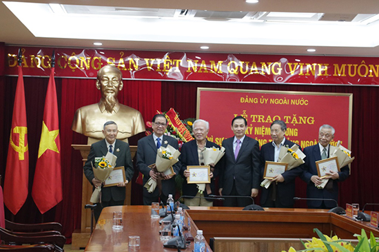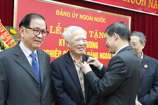 Nhân dịp này, Đảng ủy Ngoài nước tổ chức Lễ trao tặng Kỷ niệm Chương "Vì sự nghiệp Công tác Đảng ngoài nước" để ghi nhận đối với những cống hiến, đóng góp của các đồng chí nguyên Lãnh đạo Đảng, Nhà nước và một số bộ, ngành trong sự nghiệp xây dựng và phát triển công tác Đảng ngoài nước./.