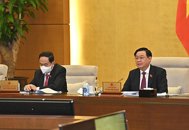 Chủ tịch Quốc hội Vương Đình Huệ phát biểu ý kiến vào nội dung thảo luận.