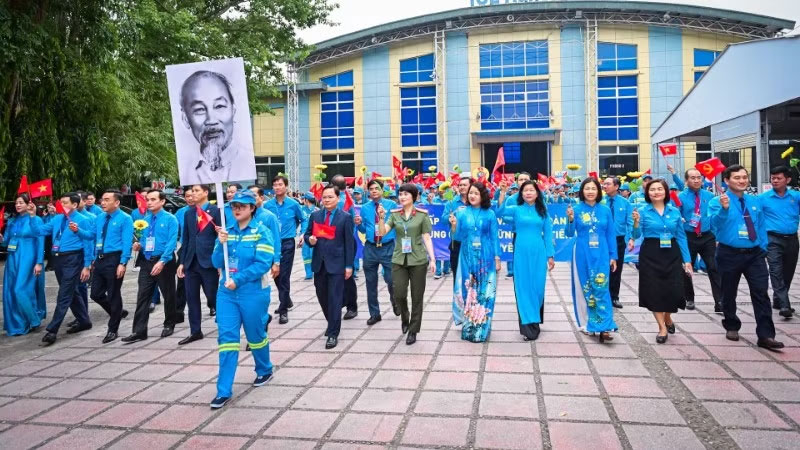 Lãnh đạo tổ chức Công đoàn tham gia Lễ diễu hành.