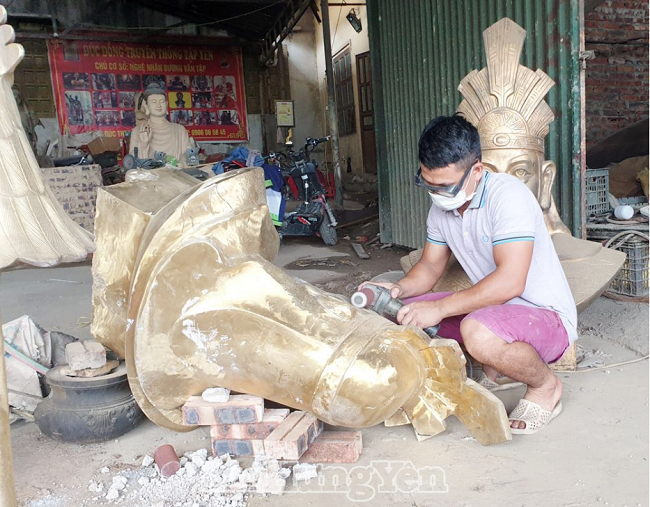 Lao động tại làng nghề đúc đồng Lộng Thượng, xã Đại Đồng (Văn Lâm) bận rộn với các đơn hàng dịp cuối năm