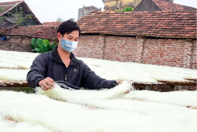 Sản xuất tại làng nghề miến dong Lại Trạch, xã Yên Phú (Yên Mỹ)
