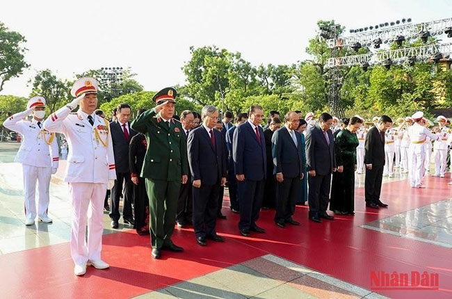 Tiếp đó, Đoàn đại biểu Ban Chấp hành Trung ương Đảng, Chủ tịch nước, Quốc hội, Chính phủ, Ủy ban Trung ương Mặt trận Tổ quốc Việt Nam đã đặt vòng hoa, vào Lăng viếng Chủ tịch Hồ Chí Minh.