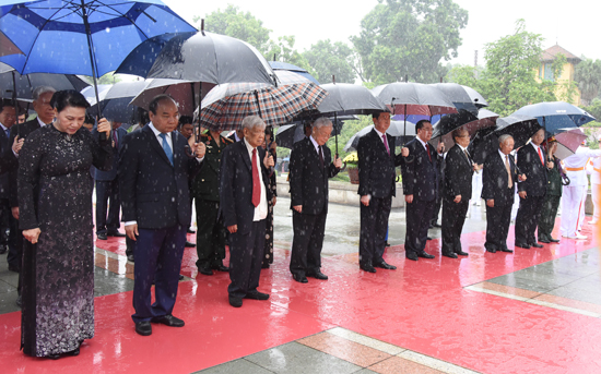 Các đồng chí lãnh đạo Đảng, Nhà nước tưởng nhớ các anh hùng, liệt sĩ. Ảnh: VGP/Nhật Bắc