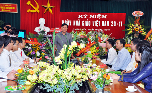 * Cùng ngày, đồng chí Nguyễn Văn Phóng, Phó Bí thư Tỉnh ủy, Chủ tịch UBND tỉnh đến chúc mừng cán bộ, giáo viên Trường THPT Hưng Yên (thành phố Hưng Yên) nhân Ngày Nhà giáo Việt Nam 20.11.