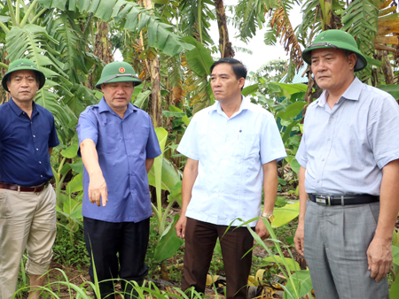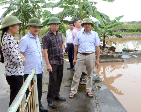 Đồng chí Nguyễn Văn Phóng kiểm tra công tác phòng chống lũ tại xã Hùng Cường (thành phố Hưng Yên)