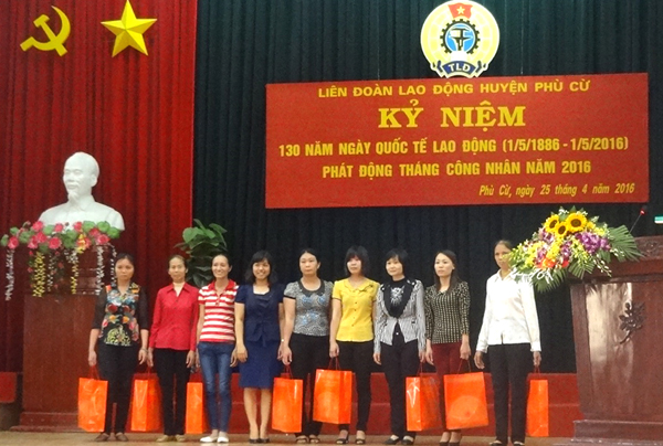 Cũng tại lễ kỷ niệm, Liên đoàn lao động huyện Phù Cừ đã phát động tháng công nhân năm 2016. Đồng thời, trao quà cho 40 công nhân lao động có hoàn cảnh khó khăn./.