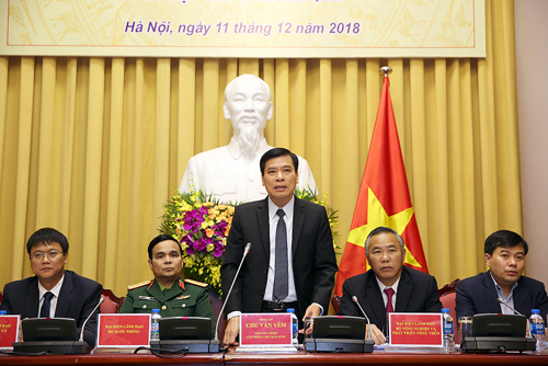 Lãnh đạo Bộ Công an phát biểu tại buổi họp báo. - Ảnh: VGP/Nhật Bắc