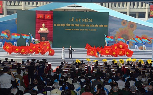 Sáng 31/1, tại Hội trường Thống Nhất, Thành phố Hồ Chí Minh, Ban Chấp hành Trung ương Đảng, Quốc hội, Chủ tịch nước, Chính phủ, Ủy ban Trung ương MTTQ Việt Nam và Thành phố Hồ Chí Minh long trọng tổ chức lễ kỷ niệm 50 cuộc Tổng tiến công và nổi dậy Xuân Mậu Thân 1968.