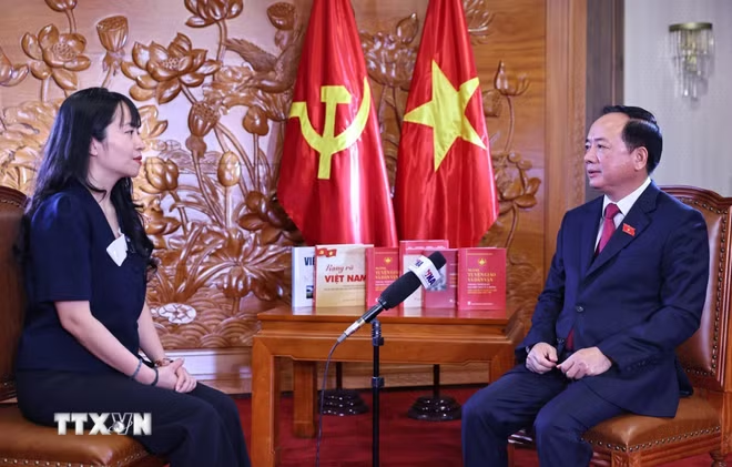 Đồng chí Trịnh Văn Quyết, Ủy viên Bộ Chính trị, Bí thư Trung ương Đảng, Trưởng ban Tuyên giáo và Dân vận Trung ương, trả lời phỏng vấn Thông tấn xã Việt Nam. (Ảnh: Minh Đức/TTXVN)