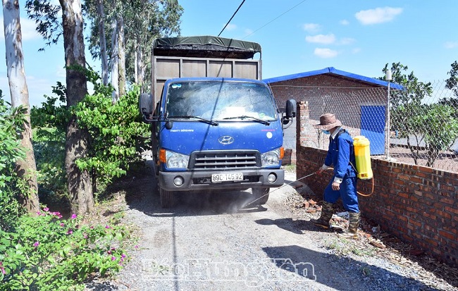 Phun khử khuẩn phương tiện giao thông vào trại chăn nuôi nhằm ngăn chặn dịch bệnh