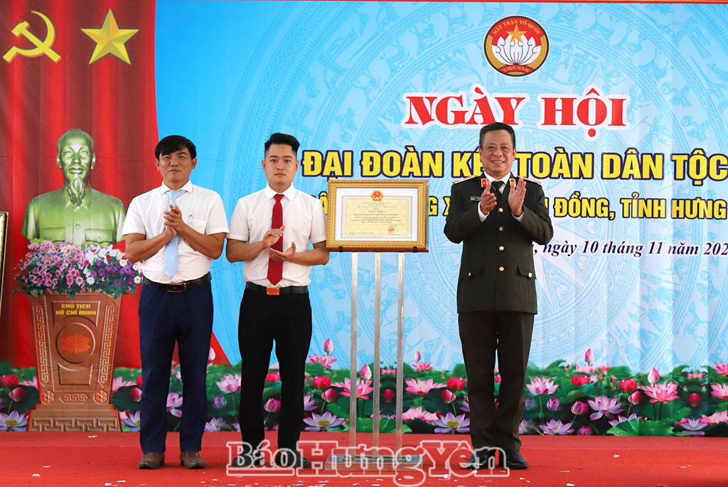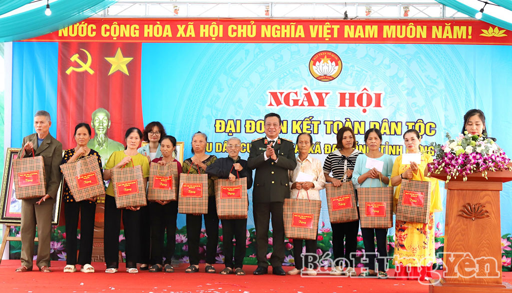 Tại ngày hội, đồng chí Giám đốc Công an tỉnh đã trao Bằng khen của Chủ tịch UBND tỉnh tặng khu dân cư Đồng Xá vì có thành tích xuất sắc trong thực hiện đợt cao điểm thi đua dịp tổ chức Ngày hội "Đại đoàn kết toàn dân tộc" năm 2025; trao 20 suất quà của tỉnh tặng các hộ nghèo, hộ cận nghèo, hộ có hoàn cảnh khó khăn trên địa bàn.