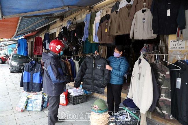 Người dân mua áo chống rét tại một cửa hàng quần áo trên đường Nguyễn Thiện Thuật (thành phố Hưng Yên)