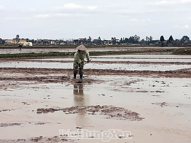 Dù thời tiết giá rét, nông dân xã Hải Triều (Tiên Lữ) vẫn xuống đồng làm đất, chuẩn bị cho vụ sản xuất lúa xuân