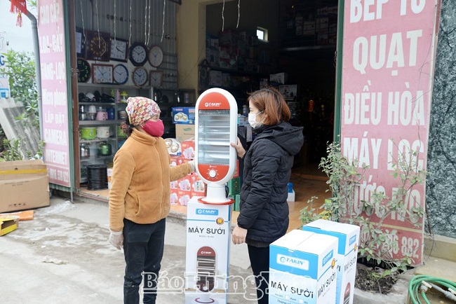 Nhiều hộ gia đình lựa chọn mua máy sưởi để phòng tránh rét (Ảnh chụp tại cửa hàng điện tử Nhiên Hảo, xã Việt Hòa, huyện Khoái Châu)