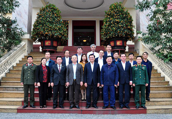 Nguyên Chủ tịch nước Trương Tấn Sang và các đại biểu chụp ảnh lưu niệm tại Trụ sở Tỉnh ủy