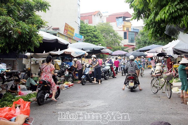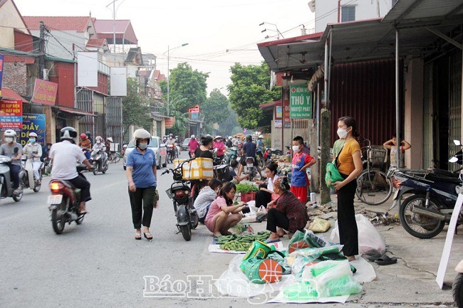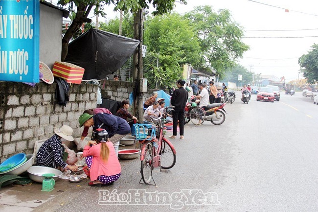 Tình trạng họp chợ ven đường diễn ra ở nhiều địa phương (ảnh chụp tại Quốc lộ 39, đoạn qua xã Thiện Phiến, Tiên Lữ)