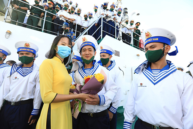 Cán bộ, chiến sĩ Hải quân vùng 4 chia tay người thân lên đường ra nhận nhiệm vụ tại huyện đảo Trường Sa, tỉnh Khánh Hòa_Ảnh: TTXVN