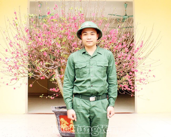 Thanh niên Trương Đăng Hòa ở xã Tân Lập (Yên Mỹ) chững chạc trong bộ quân phục