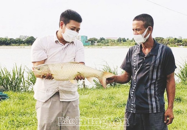 Anh Lưu Văn Dũng, xã Quang Hưng (Phù Cừ) kiểm tra sự phát triển của cá thương phẩm