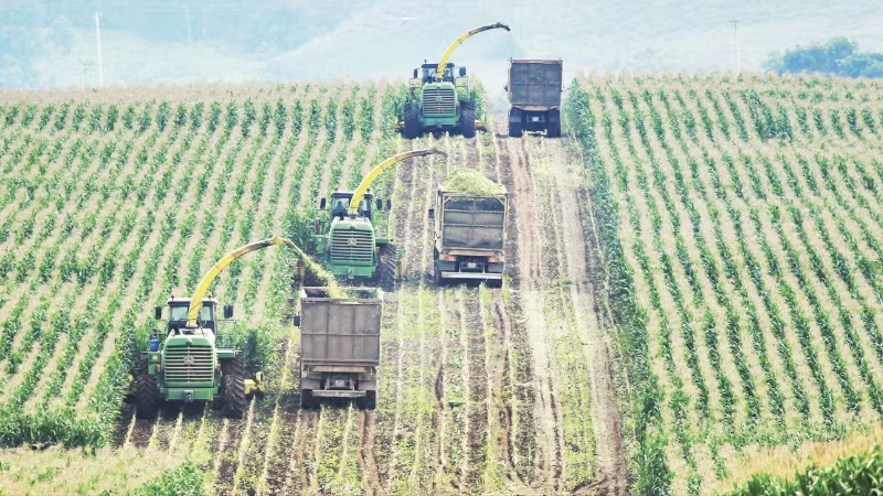 Thu hoạch ngô sinh khối tại vùng nguyên liệu của Tập đoàn TH. (Ảnh: Tập đoàn TH)