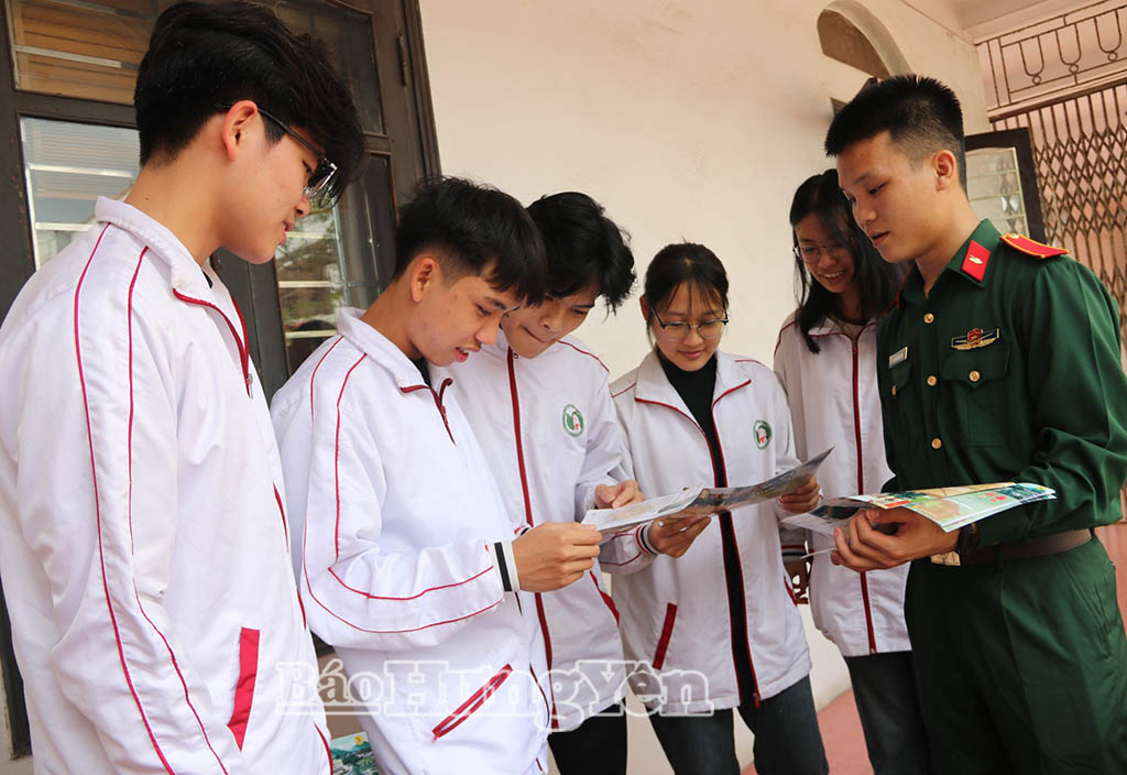 Học viên Trường Sĩ quan Tăng Thiết giáp tư vấn, hướng nghiệp cho học sinh Trường THPT Nguyễn Đức Cảnh (phường Trần Lãm).