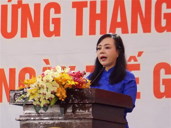 Bộ trưởng Bộ Y tế Nguyễn Thị Kim Tiến phát biểu tại buổi lễ. (Ảnh: Đinh Hằng/TTXVN)