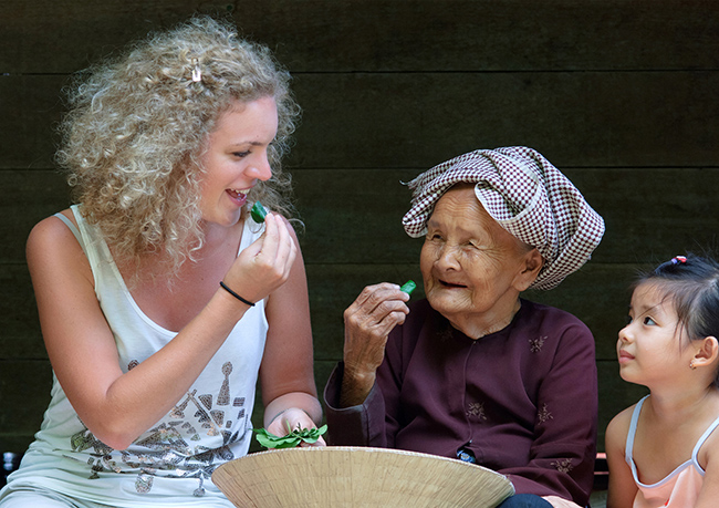 Đối ngoại nhân dân góp phần tích cực trong việc giúp nhân dân thế giới hiểu rõ hơn về Việt Nam (Trong ảnh: Du khách tìm hiểu các giá trị văn hóa truyền thống của người dân Việt Nam)_Ảnh: Phạm Nhật Thưởng