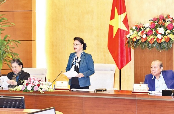 Chủ tịch QH Nguyễn Thị Kim Ngân phát biểu tại phiên họp. Ảnh: TRỌNG ĐỨC (TTXVN)