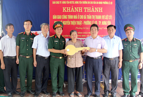 Bà Trần Thị Thanh (sinh năm 1937) là vợ liệt sỹ Hoàng Xuân Đại hy sinh trong kháng chiến chống Mỹ. Ban CHQS thành phố Hưng Yên, Viettel Hưng Yên, Trường đại học Chu Văn An và các ban, ngành, đoàn thể của phường Lê Lợi đã ủng hộ 81,5 triệu đồng hỗ trợ xây nhà cho bà Thanh. Sau gần 2 tháng thi công, ngôi nhà mái bằng kiên cố có diện tích 40 m2 đã được hoàn thành.