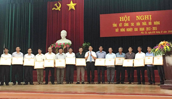 Tính đến ngày 31/12/2015, 100% xã, thị trấn trên địa bàn huyện hoàn thành công tác DTĐR đất nông nghiệp giai đoạn 2013-2015. Có 64,4% số hộ nhận 1 thửa; 33,3% số hộ nhận 2 thửa; 2,1% số hộ nhận 3 thửa và 0,2% số hộ nhận 4 thửa.