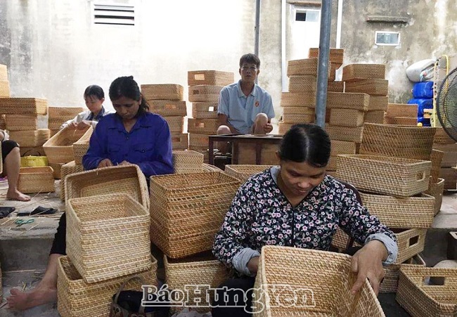 Sản xuất mây, tre đan của gia đình chị Cao Thị Hoa, xã Ngọc Thanh (Kim Động)