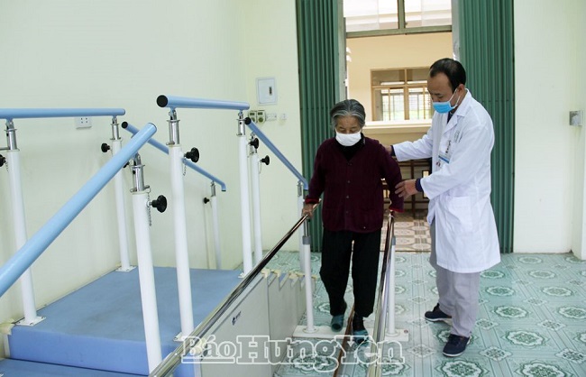 Thực hiện vật lý trị liệu cho bệnh nhân tại Trung tâm Y tế huyện Khoái Châu