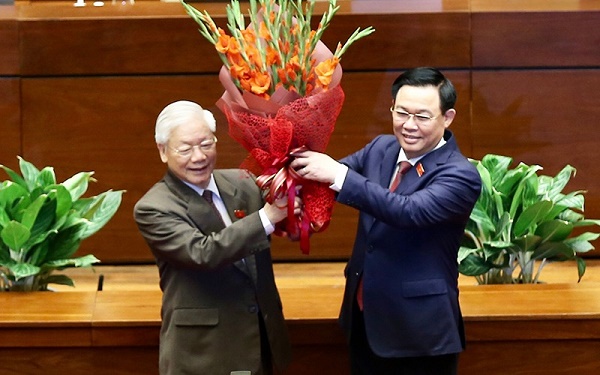 Chủ tịch Quốc hội Vương Đình Huệ nhấn mạnh, trong hơn hai năm qua, trong điều kiện cụ thể, Tổng Bí thư Nguyễn Phú Trọng đã đồng thời giữ cương vị Chủ tịch nước. Mặc dù nhiệm vụ rất nặng nề nhưng trách nhiệm cao cả trước Đảng, trước nhân dân, Tổng Bí thư đã dành hết tâm sức của mình cho sự phát triển của đất nước, hoàn thành xuất sắc trọng trách trên cương vị Chủ tịch nước CHXHCN Việt Nam.